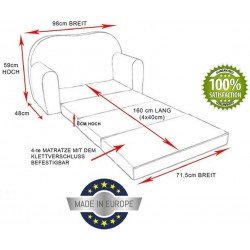 Tyylikäs lasten sohva lastenhuoneeseen, kevyt, mutta tukeva ja helppo lapsenkin liikutella.