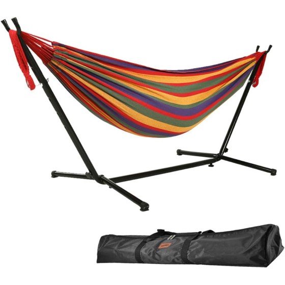 kokonaispituus: 330 cm metallirungolle Säilytyslaukku, missä riippukeinu kulkee helposti mukana ja on helppo säilyttää.