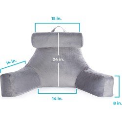 Tyylikäs lukutyyny, jossa päädyssä paikka kaukosäätimelle.