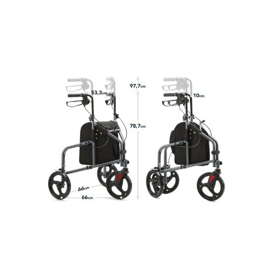 Rollaattori on helposti mukana kuljetettava, sillä sen kokoon taittaminen onnistuu muutamassa sekunnissa ja kokoon taitettuna se mahtuu pieneen tilaan ja kulkee kätevästi mukana vaikka auton takakontissa.